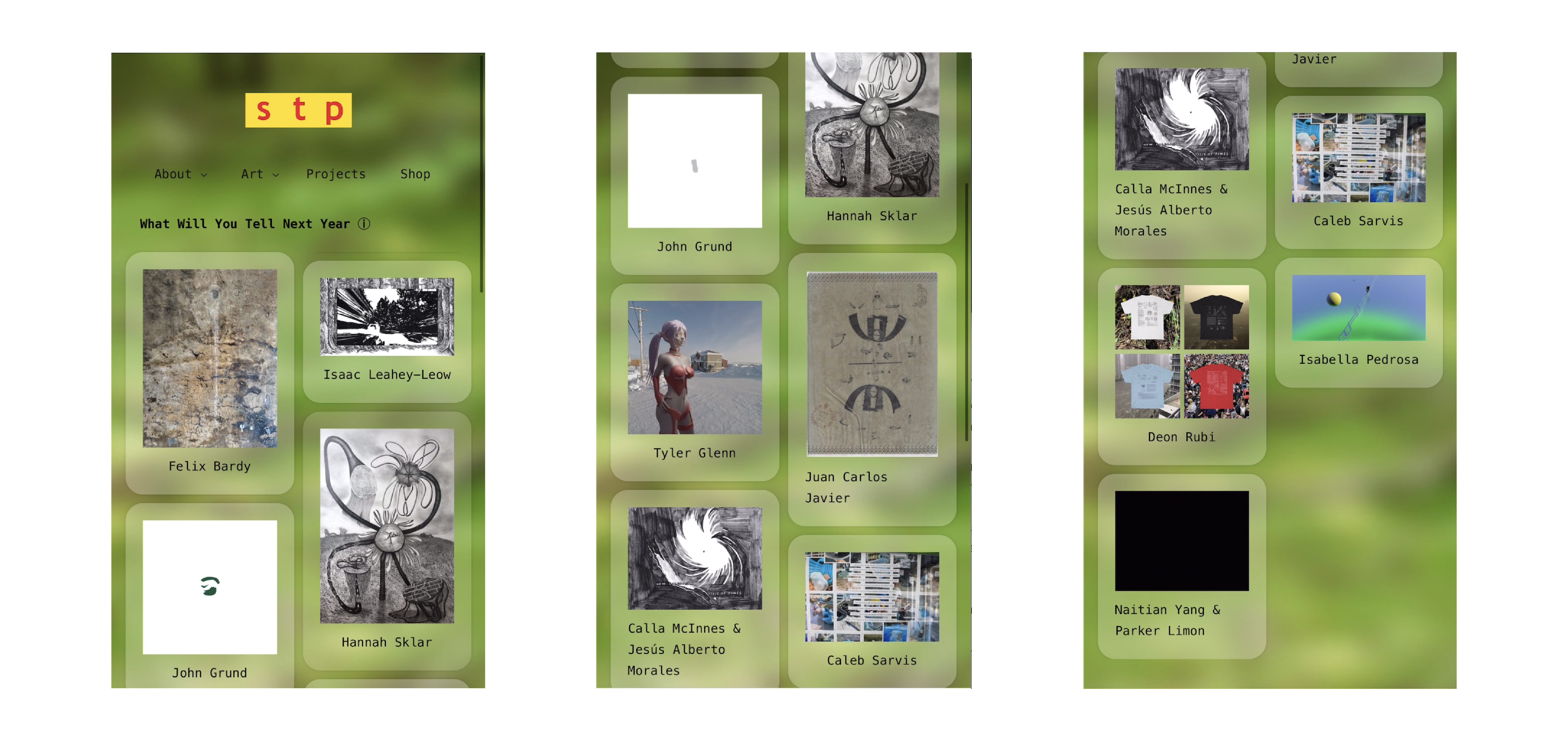 What Will You Tell Next Year, invited 12 artists to consider the climate crisis. Their engagement with each other and the public consisted of three crit weekends themed Reclaiming Ecologies, Imagined Futures, and Networks+Relationships. Each artist or group had around thirty minutes to present their work and have a conversation, share ideas, ask questions to the other members, to the audience and our invited guests Vibha Galhotra, Ryder Ripps, Jen Liu, Lexie Smith, Nora Akawi and Clarissa Tossin. These crits were aimed to foster conversation and expand these works that are being debuted here.